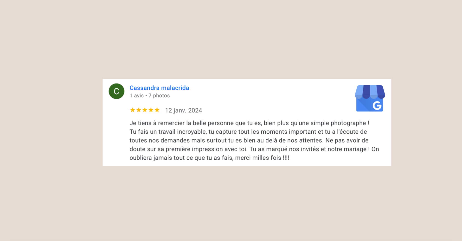 Pour résumé, choisissez des prestataires avec qui vous vous sentez à l'aise, qui ont fait preuve de professionnalisme lors de vos échanges, et prenez le temps de fouiller dans leurs avis, on y trouve souvent des pépites bien cachée. Et j'en profite pour préciser que chaque ligne est écrite de ma main et non par un robot bien renseigné.