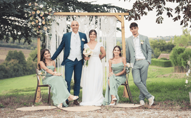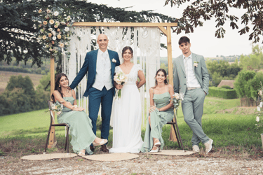 Pendant les photos de groupe, l'orage et la pluie nous ont fait le plaisir de se joindre au mariage !
